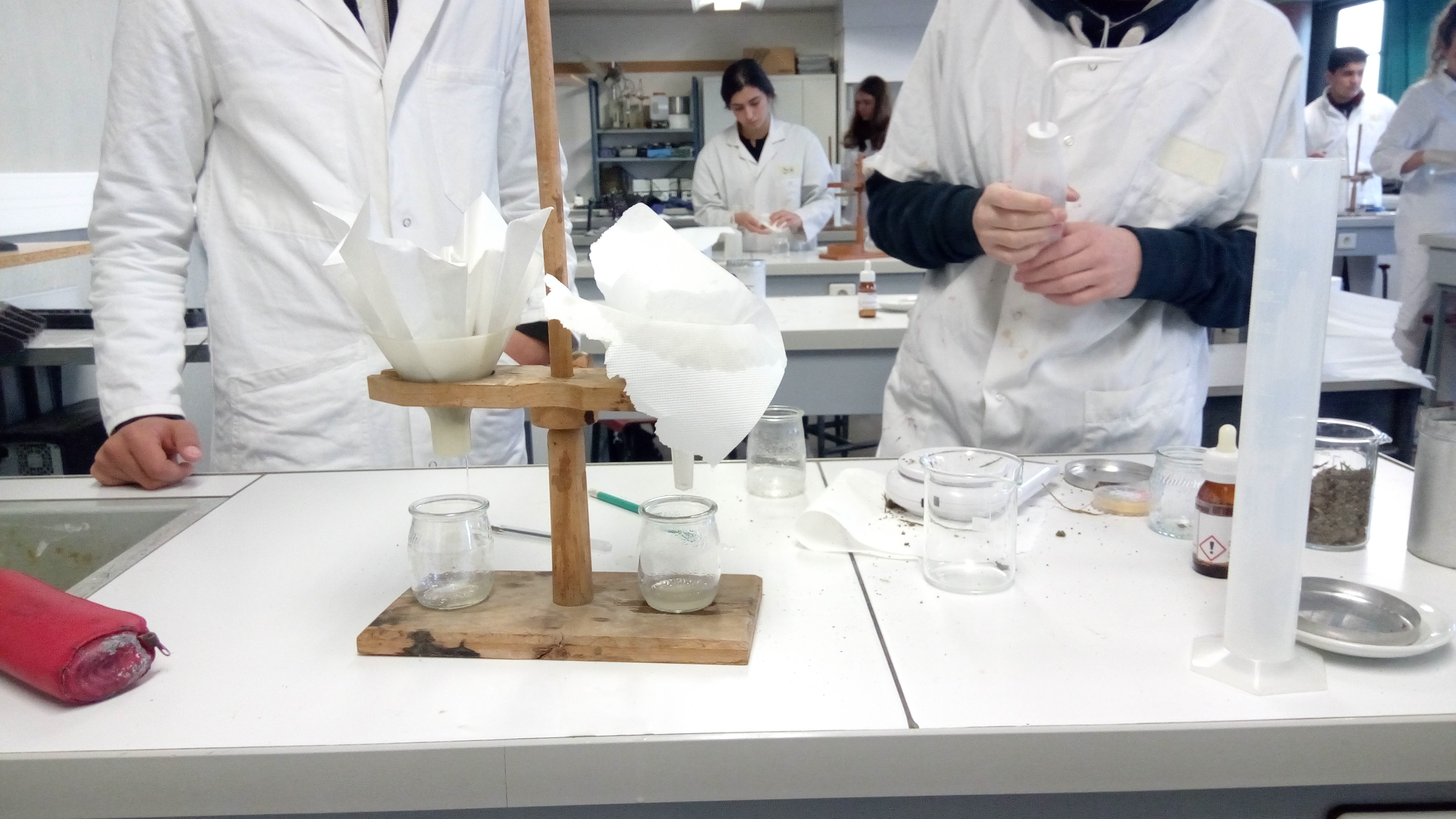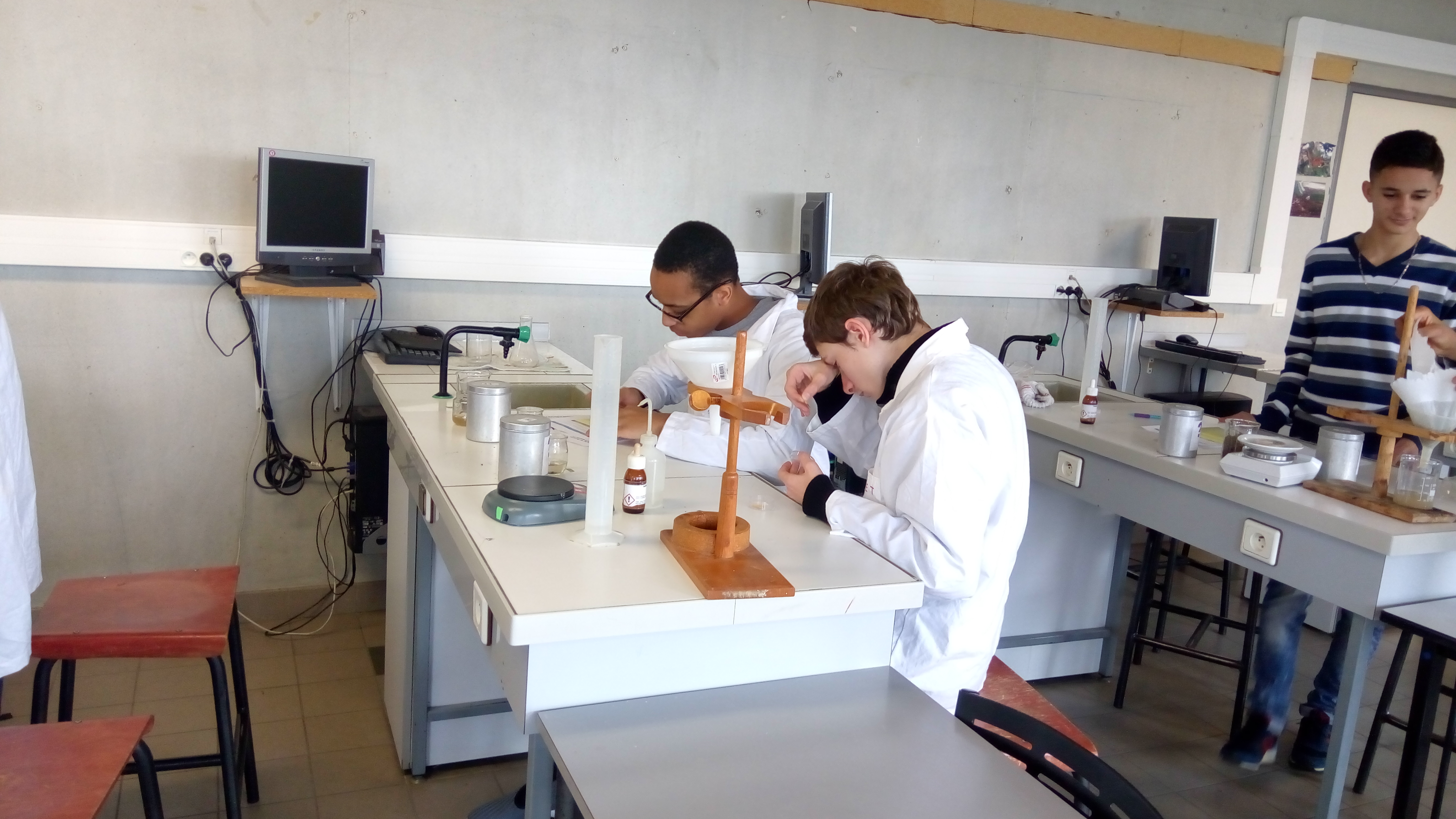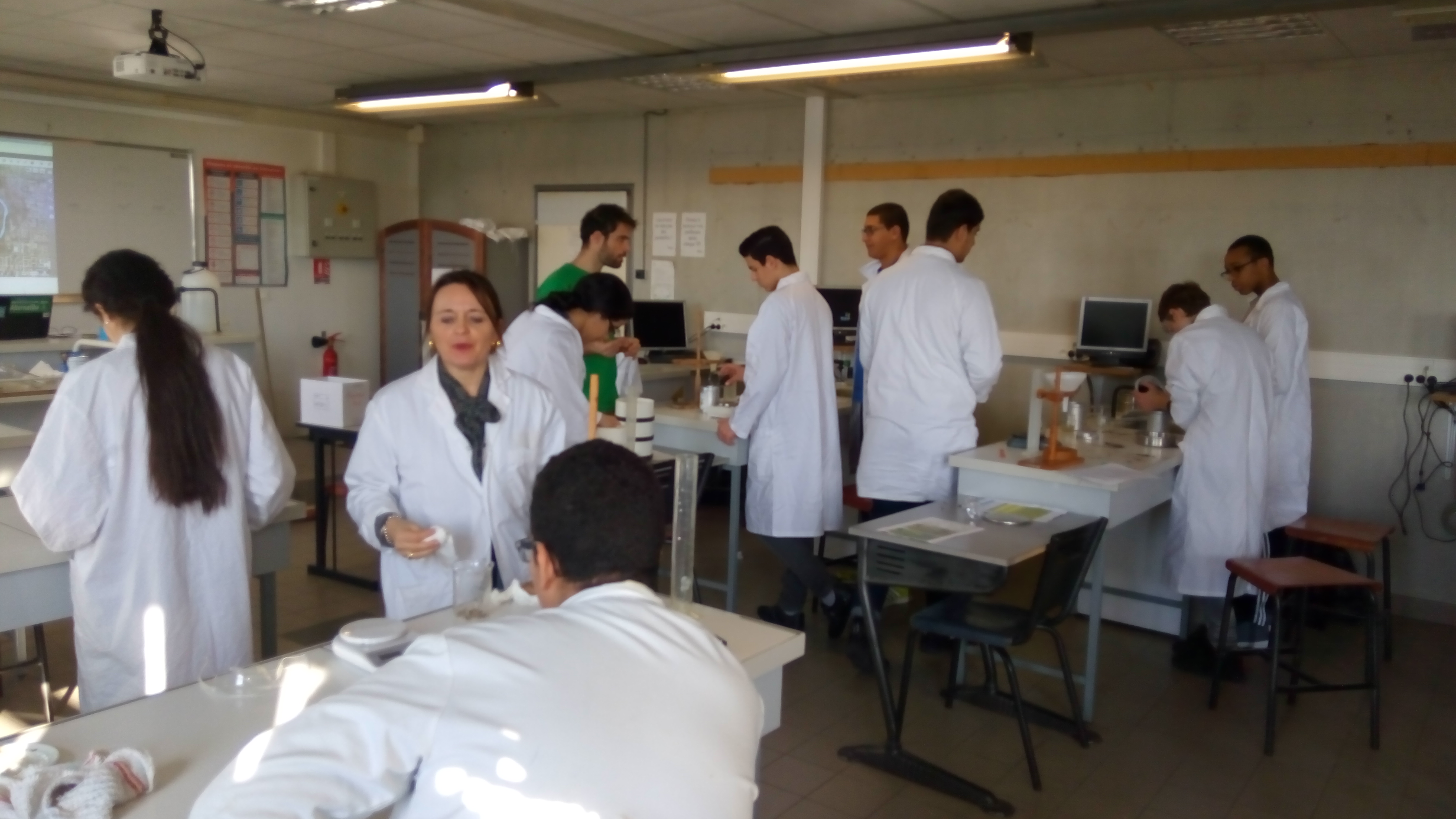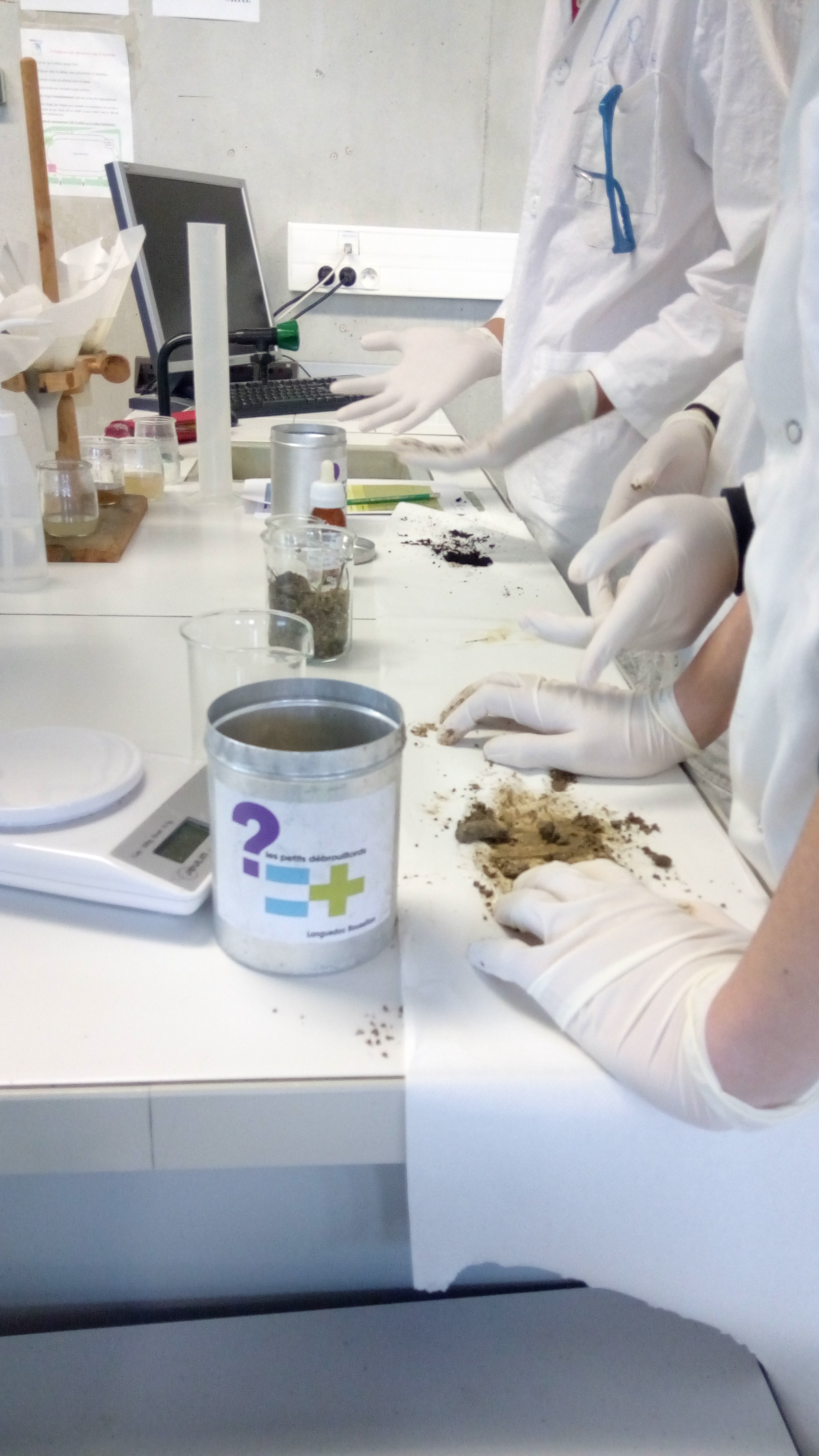 Ce vendredi matin, Maxime More-Chevalier est intervenu dans les travaux pratiques de physique-chimie avec la classe de seconde 204. Les élèves ont pu exploré les propriétés du sol à travers des expériences variés et concrètes (couleurs des extraits, composition, granulométrie, propriétés mécaniques…).