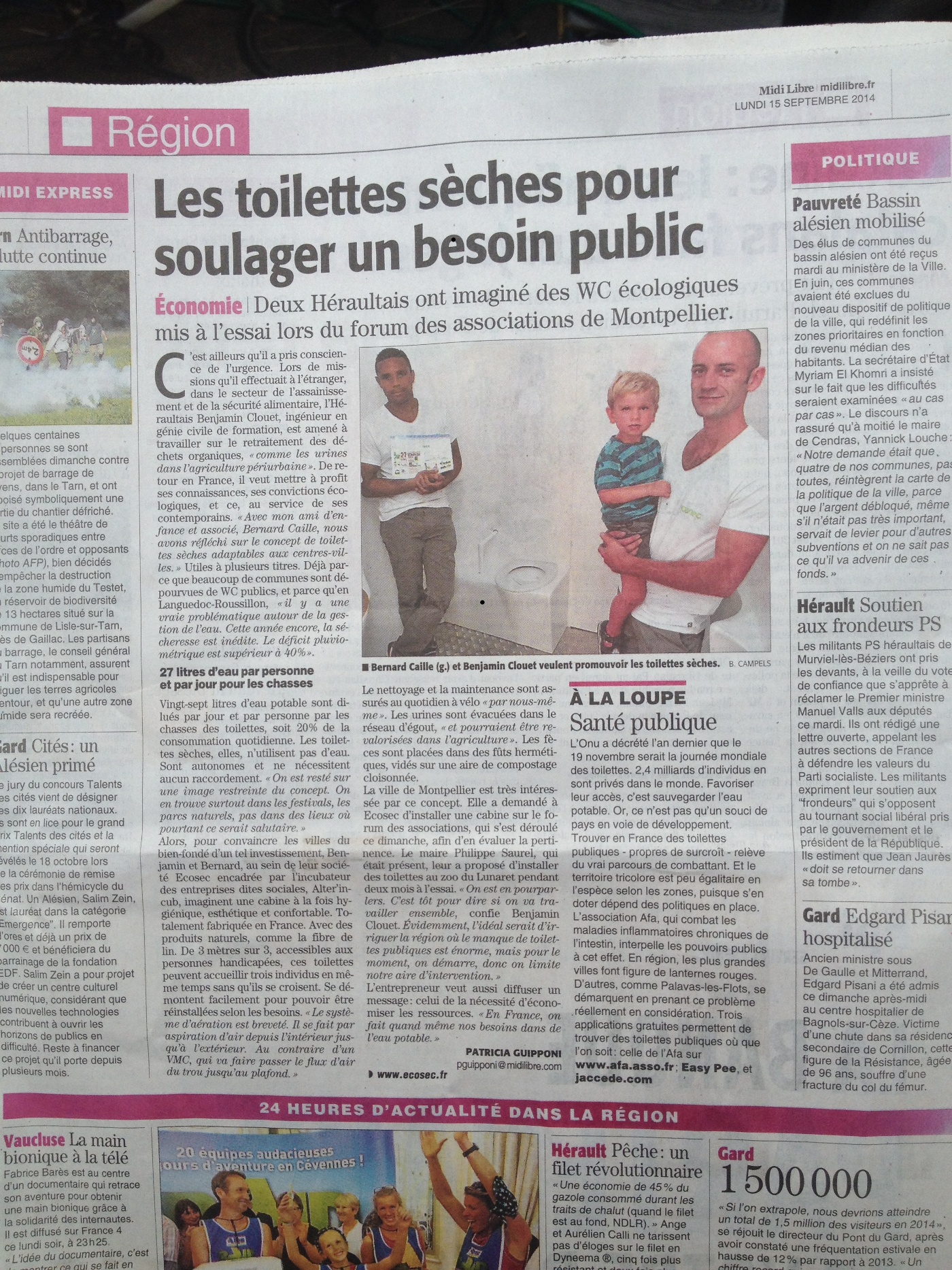 C’est sous la plume de Patricia Guipponi que nous avons été gratifié d’un article dans la section « Région » du Midi Libre du lundi 15 septembre. Pour ceux qui l’ont manqués, en voici le contenu.