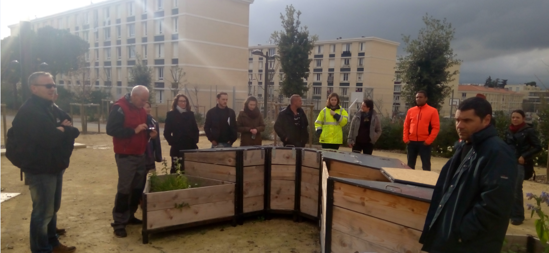 La visite du site expérimental de compostage collectif au Petit Bard a été un temps fort afin de mettre en pratique leurs connaissances en diagnostiquant l’installation.